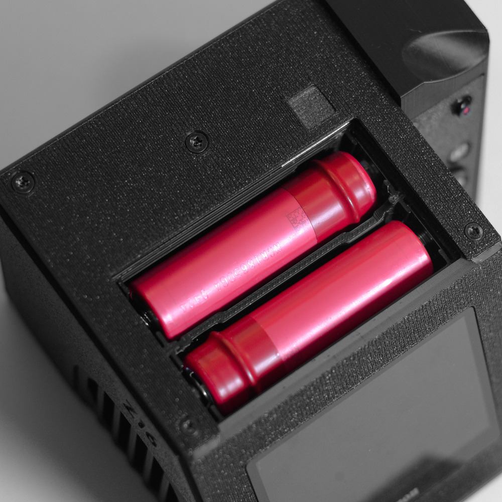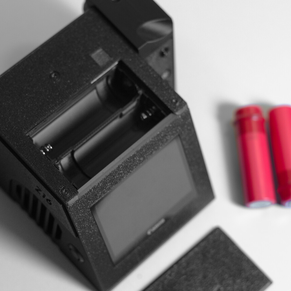 Cooling is also greatly improved. It has heatsinks and a small Noctua fan that expels heat to the outside, in a compartmentalized area and completely separated from the wiring area. The ventilation of the memory card is also improved by a grille and more space by using a dummy battery designed specifically for this purpose.